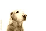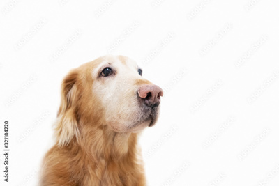 portrait of golden retriever on white background