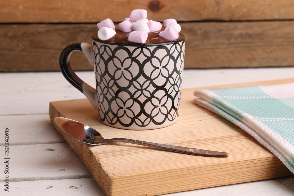 cup of delicious homemade chocolate with marshmallows