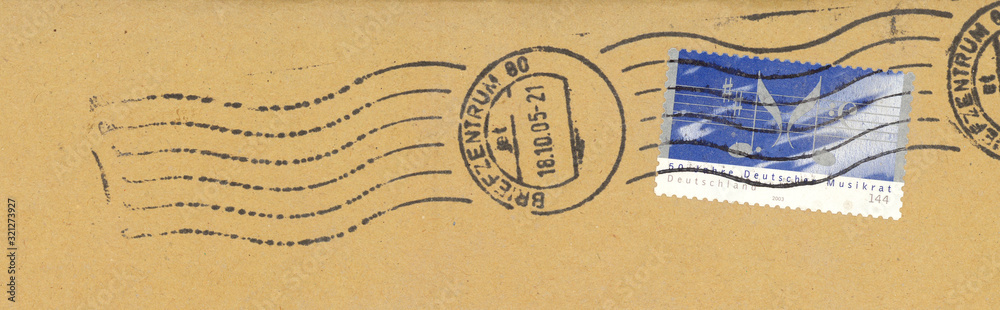 Briefmarke stamp Deutschland Germany Musik Musikrat 2003 Noten Notenblatt Notenschlüssel Melodie gestempelt used Umschlag braun beige 144