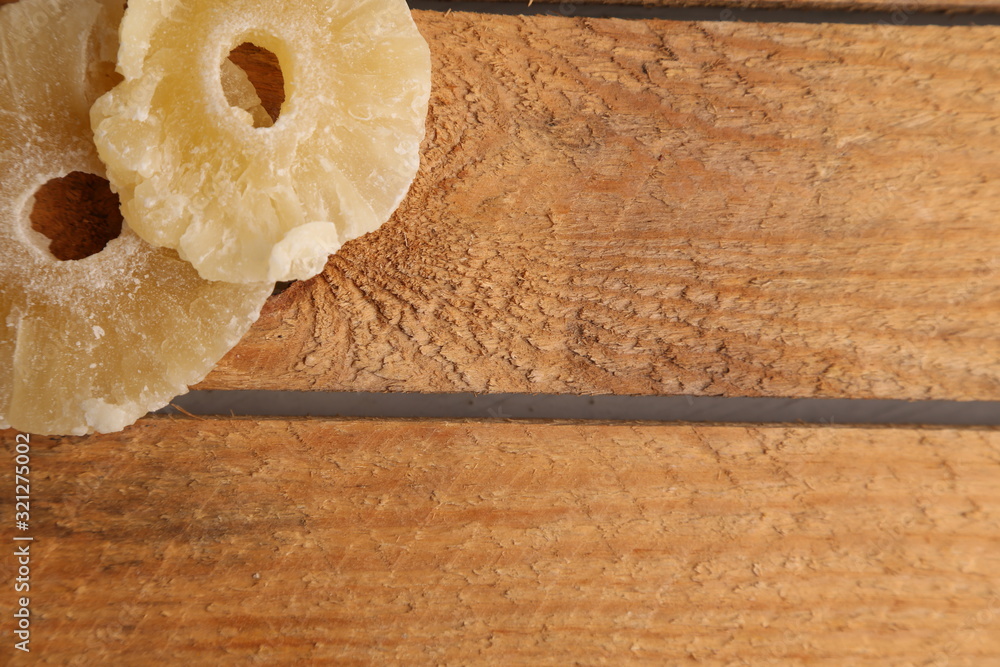 piece of dried pineapple fruit in color background