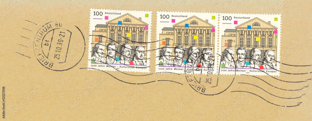 Briefmarke stamp Deutschland Germany Weimar Kulturstadt Europas 1999 1100 Jahere gestempelt used Umschlag braun