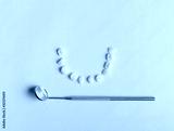 dental tools on pink background top view