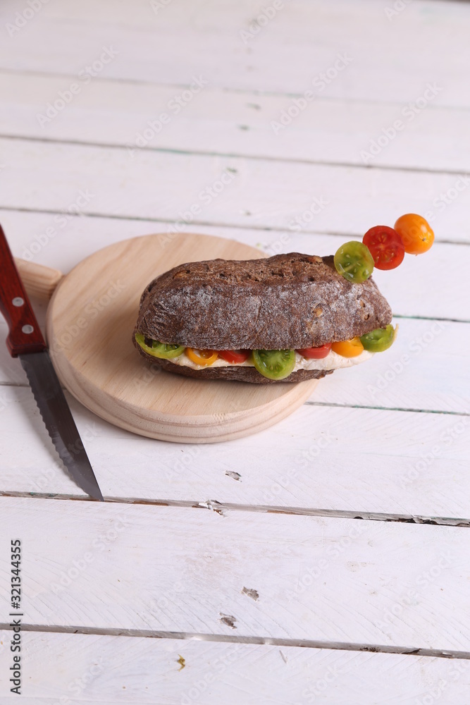 chicken breast sandwich with tomato on walnut bread