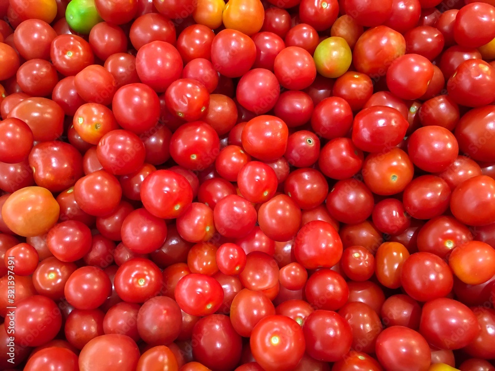 Fresh seeda tomatoes set as a background in market.Healthy eating.Small tomato