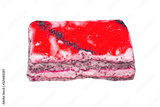 A piece of cake with cream and fruit on a white background.Layered fruit cake.Cake with cream photo.