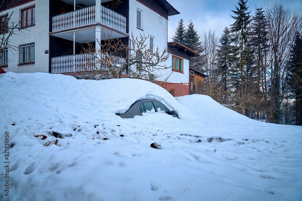 Strong real winter in the south of Poland - lots of snow - the car is buried up to the roof - wait until spring