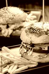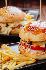 Closeup of home made burgers on wooden background