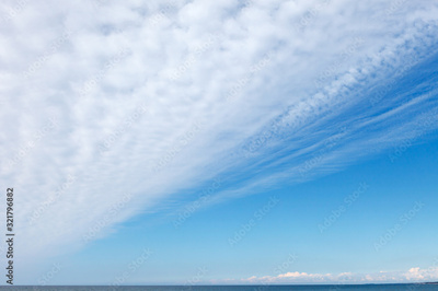 Beautiful blue sky over the sea with translucent, white, Cirrus clouds