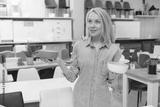 Cheerful female customer choosing between two bowl dishes to buy, shopping at home goods and furnishings store