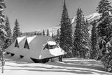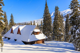 Mountain wooden hut covered with fresh snow in Gasienicowa valley during winter time, Tatra Mountains, Poland
