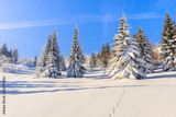 Trees in beautiful winter landscape of Gasienicowa valley after fresh snowfall, Tatra Mountains, Poland