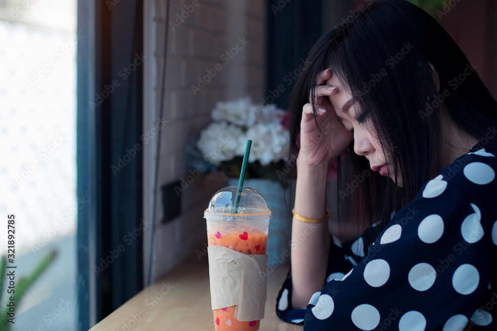 Asian sad girl near window thinking about something with loneliness and unhappy in valentine day.