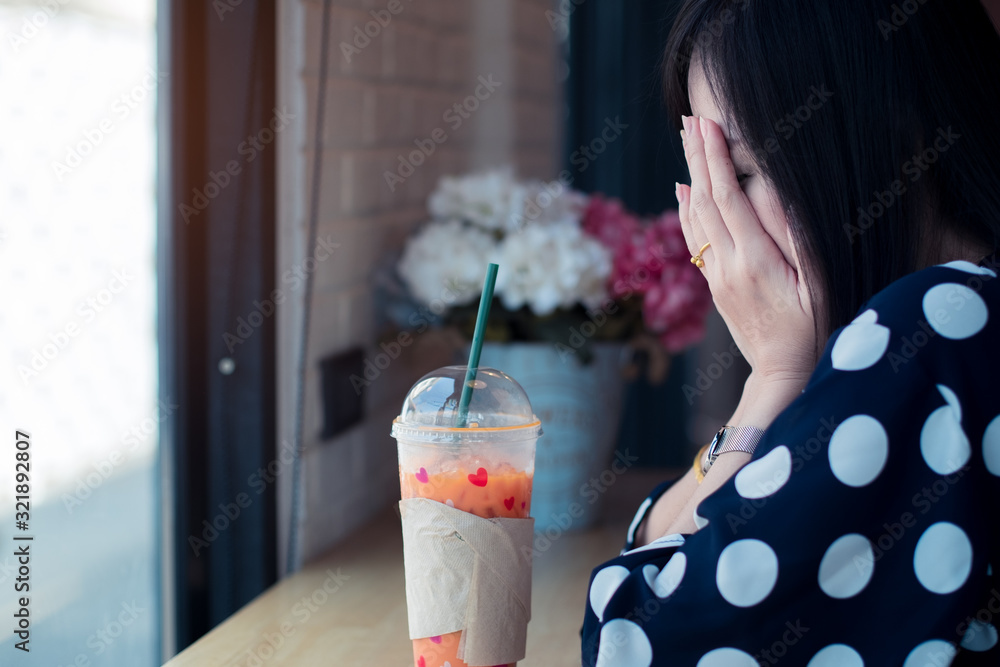 Asian sad girl near window thinking about something with loneliness and unhappy in valentine day.