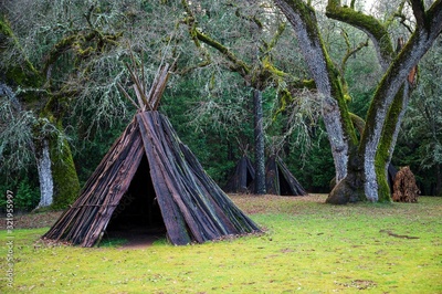 Native American traditional Me-Wuk ceremony lodging during daytime