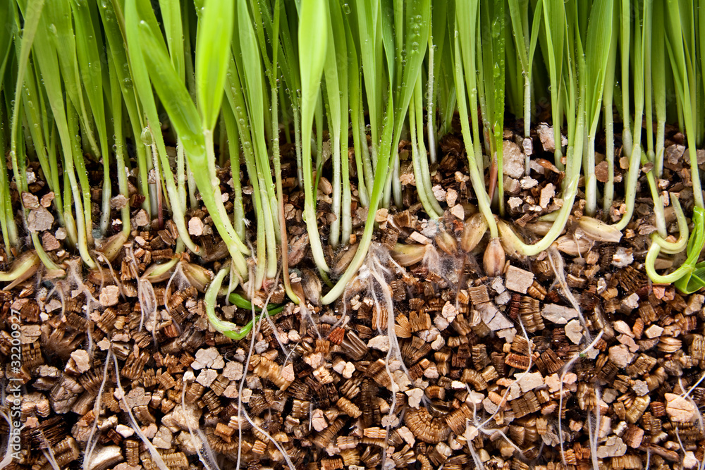 Fresh green grass growing vermiculite