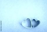 Two plastic hearts together, the color of the Ukrainian flag, blue and yellow. Blank with place for your text.
