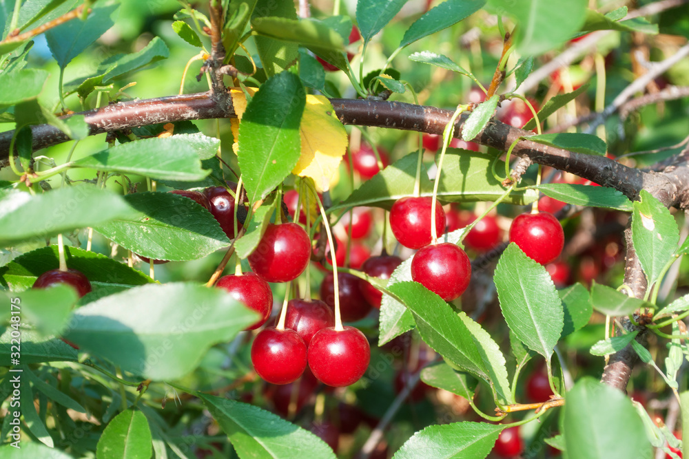ripe cherries. Fresh Cherries on branch.