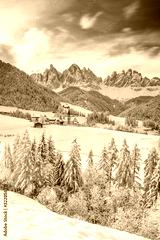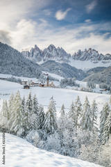 Santa Maddalena village in Val di Funes one of the most beautiful valleys Dolomite in the winter