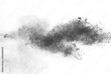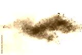 Abstract deep brown dust explosion on white background.Freeze motion of brown dust splash.