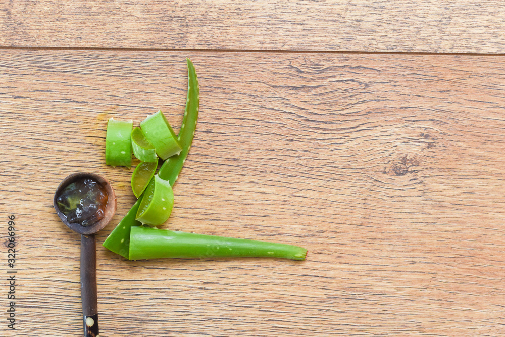 Aloe vera plant cut up in slices with aloe gel for natural healing and beauty products