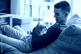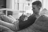 Handsome teenage guy relaxing on modern soft couch at home in living room