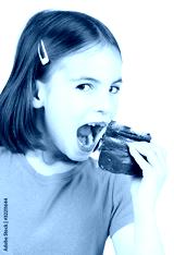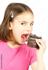little girl with chocolate cake isolated on white background