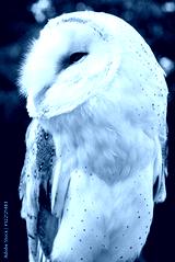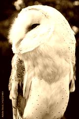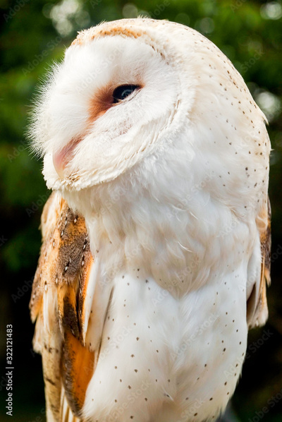Barn Owl or Tyto alba Profile view of a young owl as it looks to the side