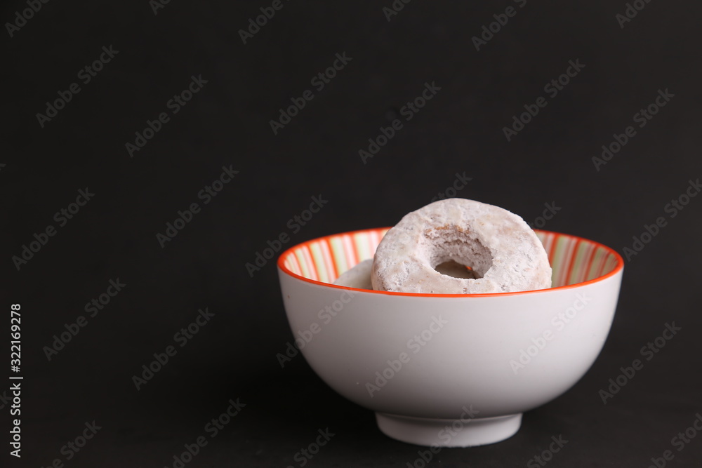 homemade bagel with sugar in bowl