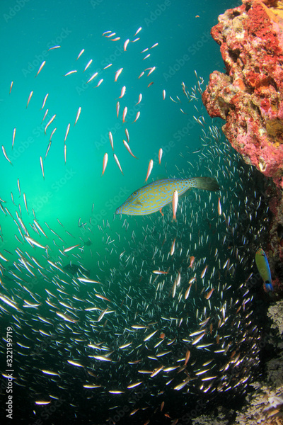 Underwater coral reef and fish