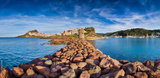 Beautiful panoramic view of Medieval town of Castelsardo, Province of Sassari, Sardinia, Italy, Europe. Colorful photo of gorgeous italian town. Popular travel destination. Mediterranean seacoast.