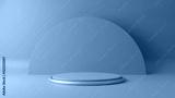 Blue pastel product stand on background. Abstract minimal geometry concept. Studio podium platform theme. Exhibition and business marketing presentation stage. 3D illustration rendering graphic design