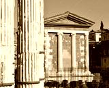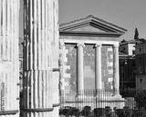 Tempio di Portuno from Tempio di Ercole Vincitore. Ancient Roman Greek classical style temples. Rome, Italy.