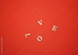 Letters creating word LOVE scattered on orange background