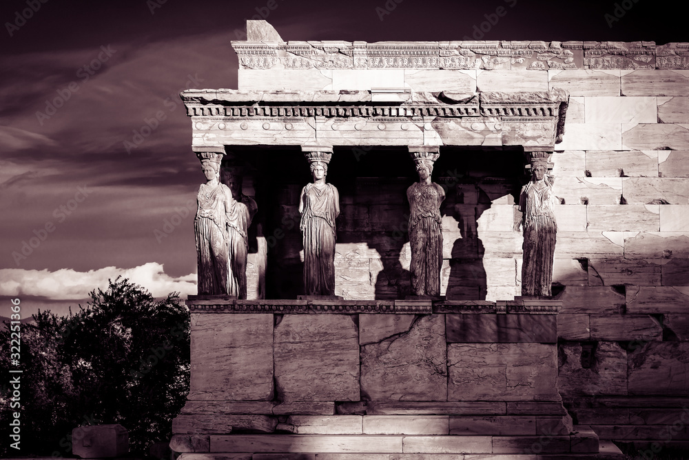 Porch of the Caryatids - black and white