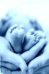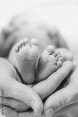 Feet of a newborn baby in the hands of parents. Happy family moment and concept.