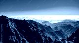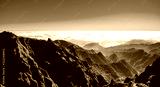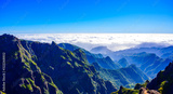 Beautiful hiking trail from Pico do Arieiro to Pico Ruivo, Madeira island. Footpath PR1 - Vereda do Areeiro. On summy summer day above the clouds. Portugal.