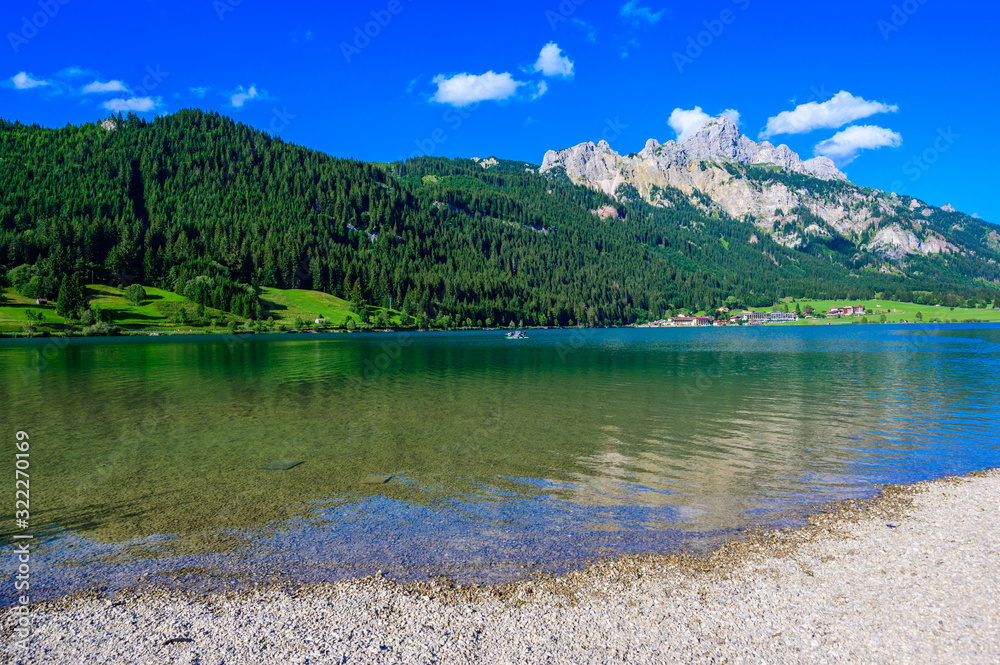 Haldensee - beautiful lake in Tannheim valley with mountain scenery - Alps, Tirol, Austria, Europe