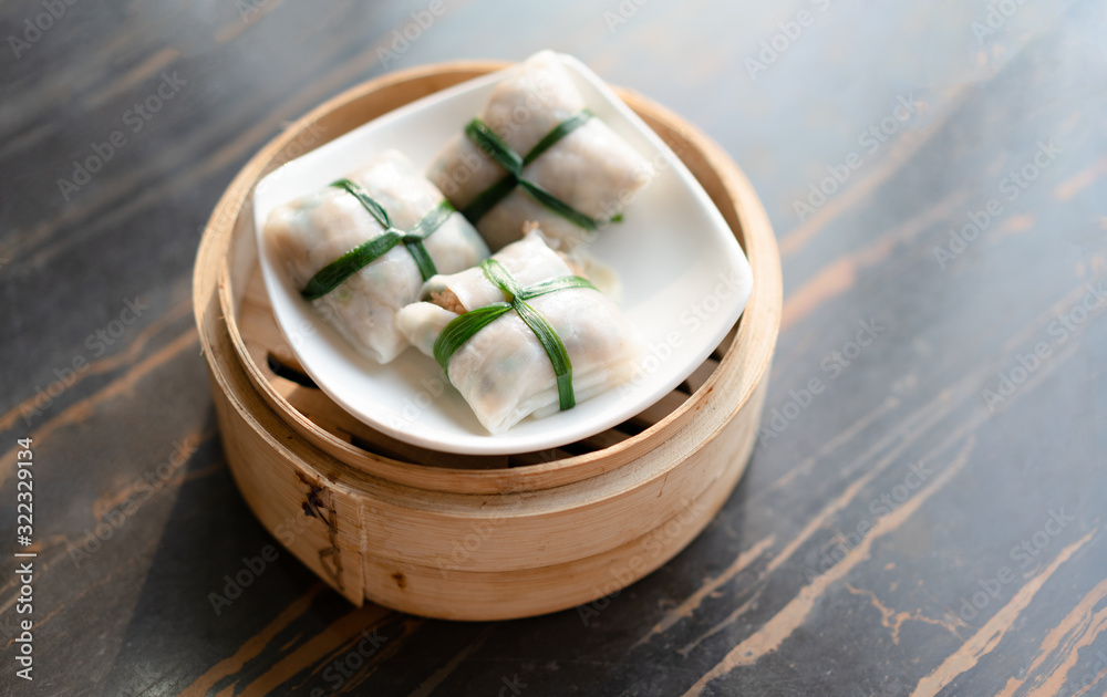 dim sum in bamboo steamer chinese cuisine