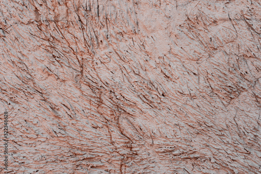 Abstract relief surface of the building wall in coral color.