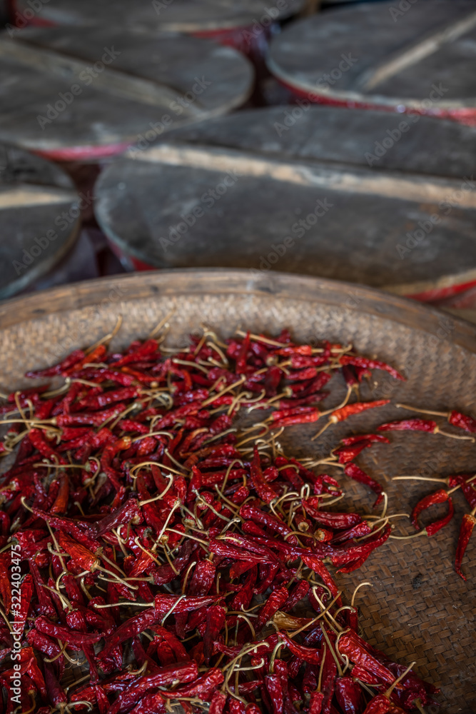 Chili drying in a wicker bowl