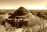 Kosciuszko Mound (Kopiec Kościuszki). Krakow landmark, Poland. Erected in 1823 to commemorate Tadedeusz Kosciuszko, and the chapel of St. Bronislawa. Aerial view in sunrise light