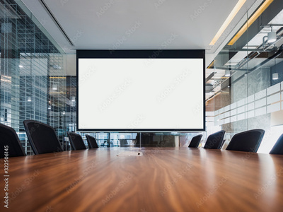 Mock up projector screen Presentation interior conference room Business meeting Office building
