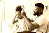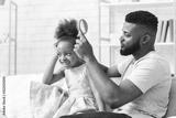 Handsome young man combing his little daughter hair