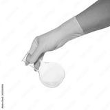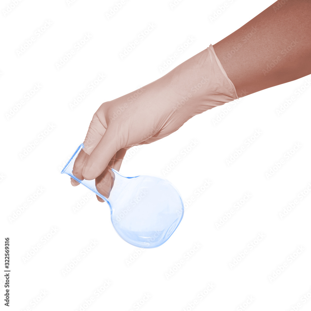 Hand hold a test tube on white background.