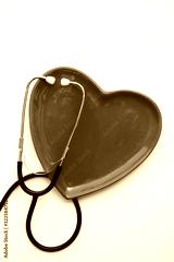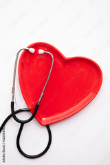 Red heart shape with a stethoscope. Healthy heart concept