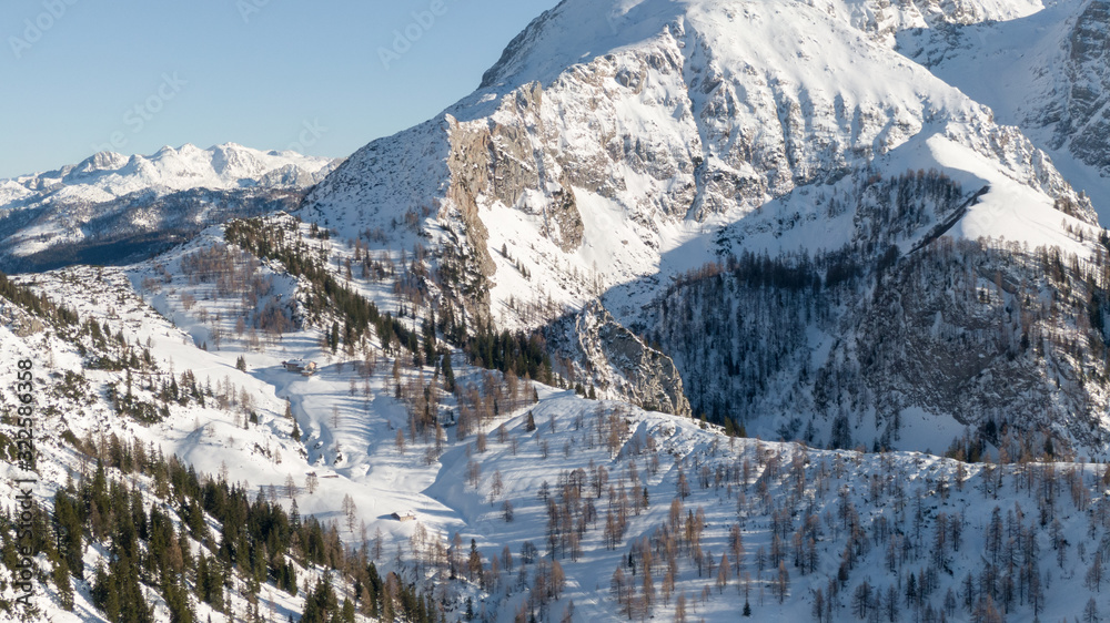 Berchtesgaden, Germany Mountain landscape in bavarian alps in winter. Mountains covered with snow