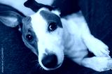 Dog jack russell terrier in the arms of his owner. Selective focus in eyes