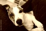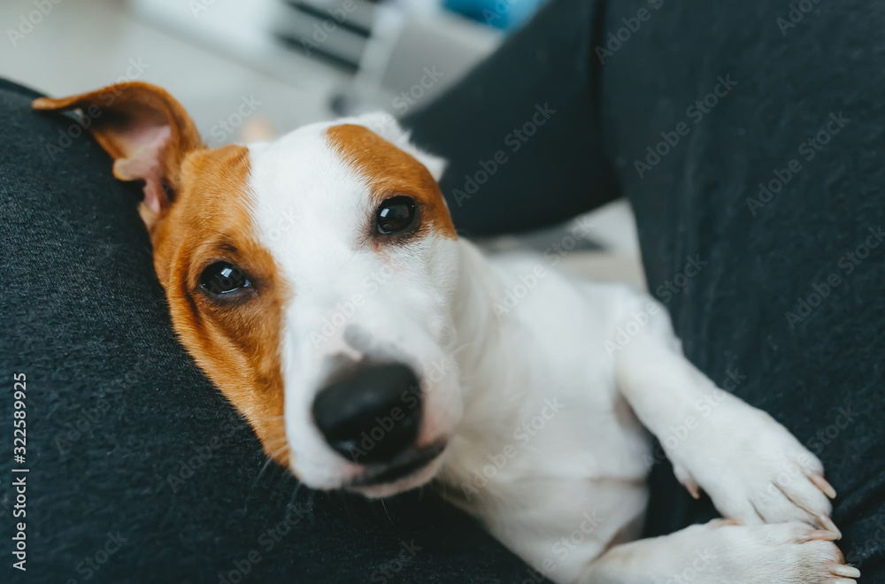 Dog jack russell terrier in the arms of his owner