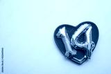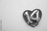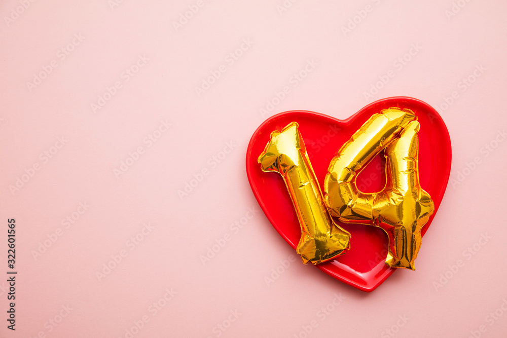 Happy valentine's day background. Red heart with foil number 14 balloons