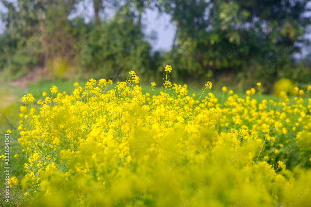 Bangladeshi mustard plants flower fields is full blooming.